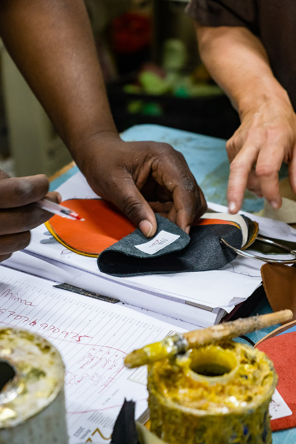 Skorna tillverkas i den kreativa stadsdelen Woodstock i Kapstaden, Sydafrika.